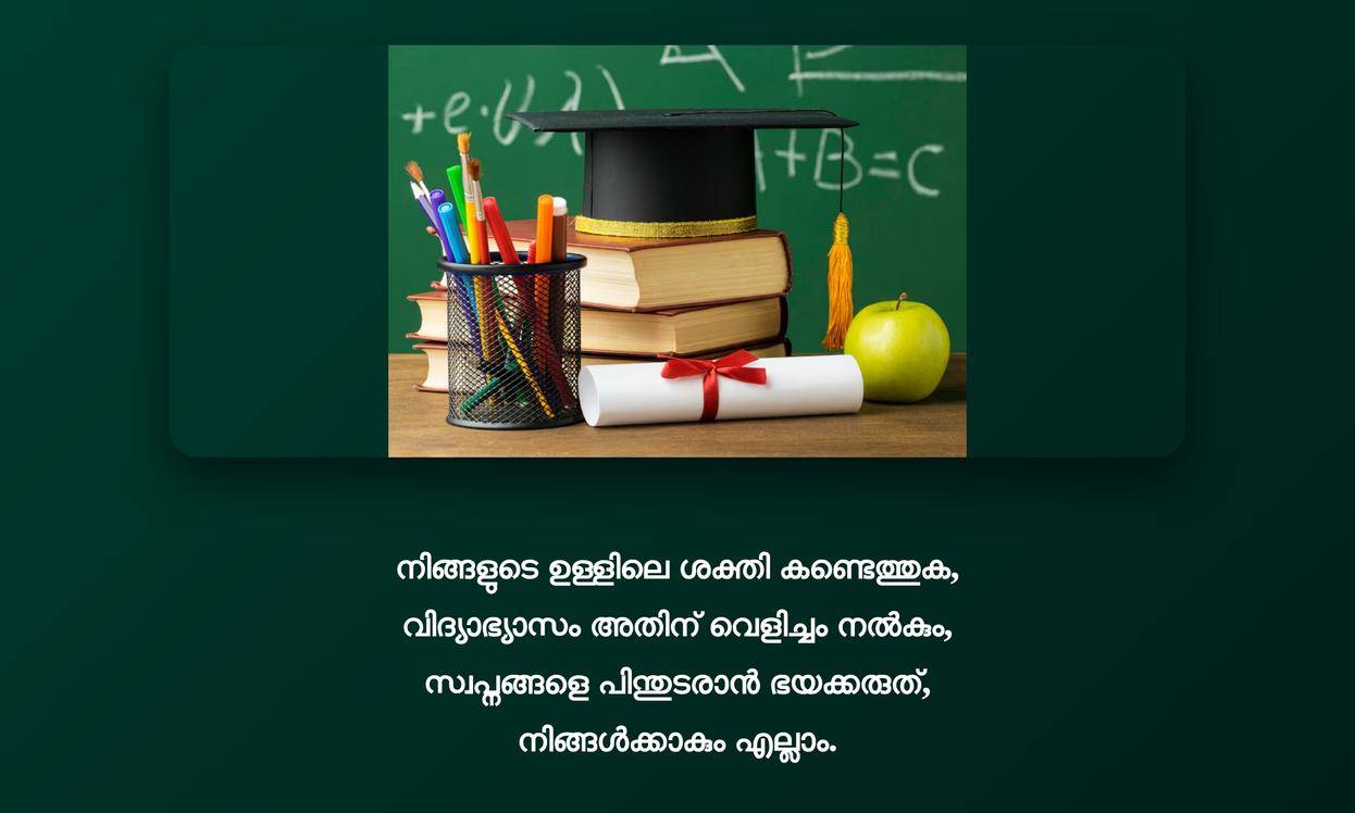 Education Quotes in Malayalam | വിദ്യാഭ്യാസം മലയാളം ഉദ്ധരണികൾ: ഈ വാക്കുകൾ നമ്മുടെ ജീവിതത്തിൽ വലിയ മാറ്റങ്ങൾ കൊണ്ടുവരാൻ കഴിവുള്ളവയാണ്. വിദ്യാഭ്യാസം വെറുമൊരു ഡിഗ്രി നേടലല്ല, അതൊരു ജീവിത style ആണ്, നിരന്തരമായ learning ആണ്. ഈ ഉദ്ധരണികൾ നമ്മളെ വീണ്ടും വീണ്ടും ഓർമ്മിപ്പിക്കുന്നു, അറിവാണ് യഥാർത്ഥ ശക്തിയെന്ന്. പുതിയ കാര്യങ്ങൾ പഠിക്കാനും വളരാനുമുള്ള നമ്മുടെ ആഗ്രഹത്തിന് ഇവ തീവ്രത നൽകുന്നു, ഇത് ഒരു positive mindset വളർത്തുന്നു.