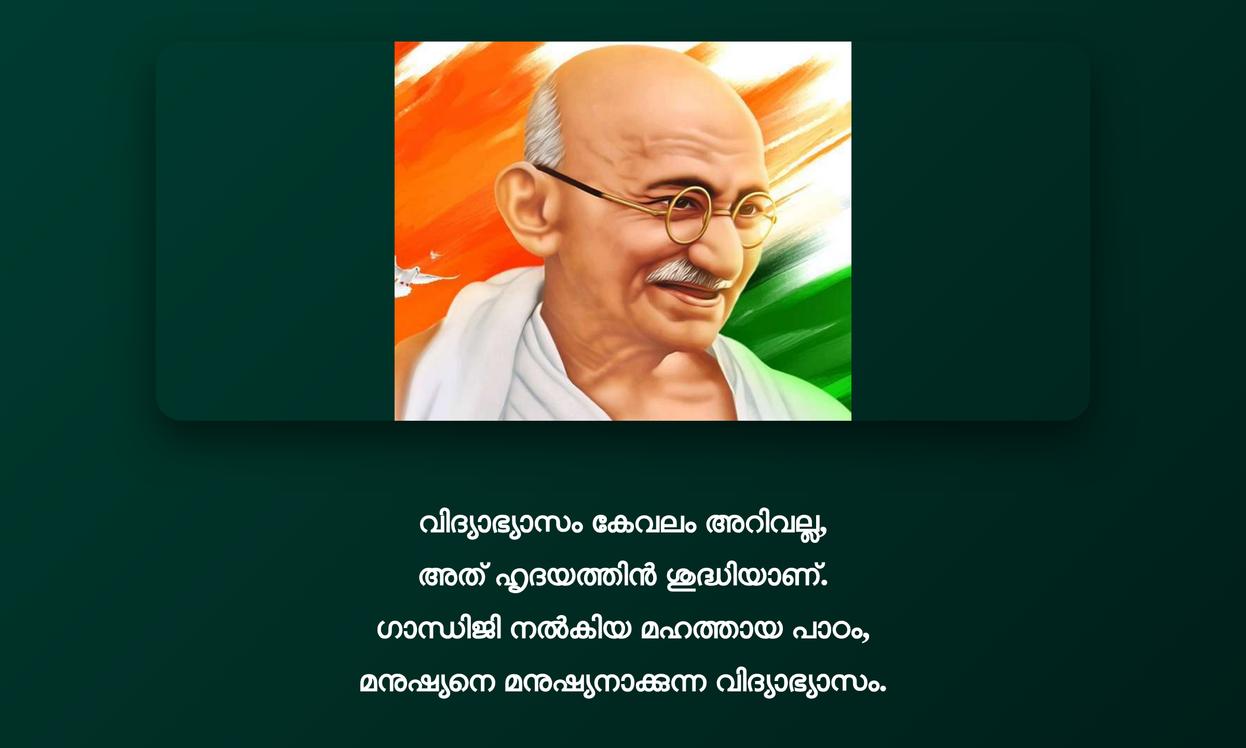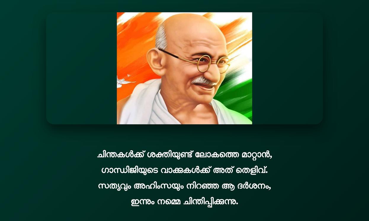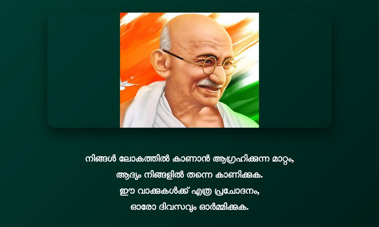 അഹിംസയുടെയും സത്യത്തിന്റെയും മഹത്വം ഓർമ്മിപ്പിച്ചുകൊണ്ട്, ഗാന്ധിജിയുടെ ഓരോ വാക്കും നമ്മുടെ conscience നെ ഉണർത്തുന്നു. ഈ journey യിലൂടെ വ്യക്തിപരമായ growth ഉറപ്പാക്കാം. ഉദ്ധരണികൾ daily life ൽ പ്രാവർത്തികമാക്കുകയും, ലോകത്ത് നല്ല മാറ്റങ്ങൾ കൊണ്ടുവരാൻ ശ്രമിക്കുകയും ചെയ്യാം.