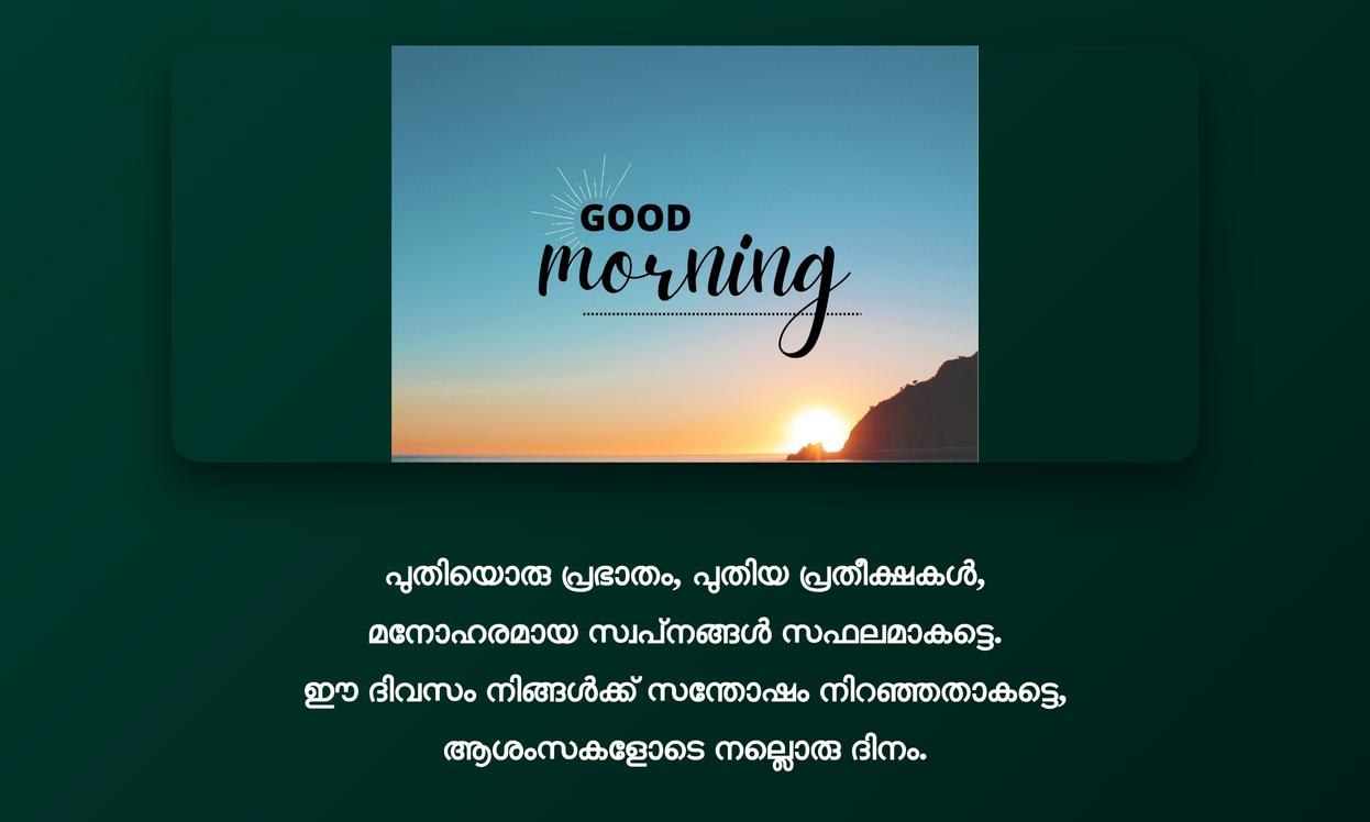 Good Morning Malayalam Quotes | ഗുഡ് മോർണിംഗ് മലയാളം ഉദ്ധരണികൾ: ഒരു നല്ല ദിവസത്തിന്റെ അടിസ്ഥാനം ഒരു പോസിറ്റീവ് തുടക്കമാണ്. പ്രചോദനം നൽകുന്ന ഗുഡ് മോർണിംഗ് ഉദ്ധരണികൾ ഈ പോസിറ്റിവിറ്റി നിലനിർത്താൻ നമ്മെ സഹായിക്കുന്നു. നമ്മുടെ മനസ്സിന് ഉന്മേഷം നൽകുകയും പുതിയ ലക്ഷ്യങ്ങളിലേക്ക് ശ്രദ്ധ കേന്ദ്രീകരിക്കാൻ പ്രേരിപ്പിക്കുകയും ചെയ്യുന്നു.