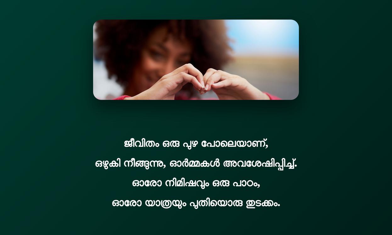 ഓരോ ഹൃദയം സ്പർശിക്കുന്ന ഉദ്ധരണിയും ഒരു ചെറിയ കഥയോ, ഒരു വലിയ ജീവിത പാഠമോ ആകാം. തിരക്കിട്ട നമ്മുടെ ജീവിത journey-യിൽ ഒരു നിമിഷം നിർത്തി ചിന്തിക്കാനും, നമ്മുടെ ഉള്ളിലെ ശക്തി തിരിച്ചറിയാനും, വെല്ലുവിളികളെ (challenges) അതിജീവിക്കാനും ഇവ നമ്മെ പ്രേരിപ്പിക്കുന്നു. ഓരോ വാക്കും ഒരു പ്രചോദനമാകട്ടെ, നമ്മുടെ ഹൃദയത്തിൽ പ്രകാശം നിറച്ച് മുന്നോട്ട് പോകാൻ സഹായിക്കട്ടെ.